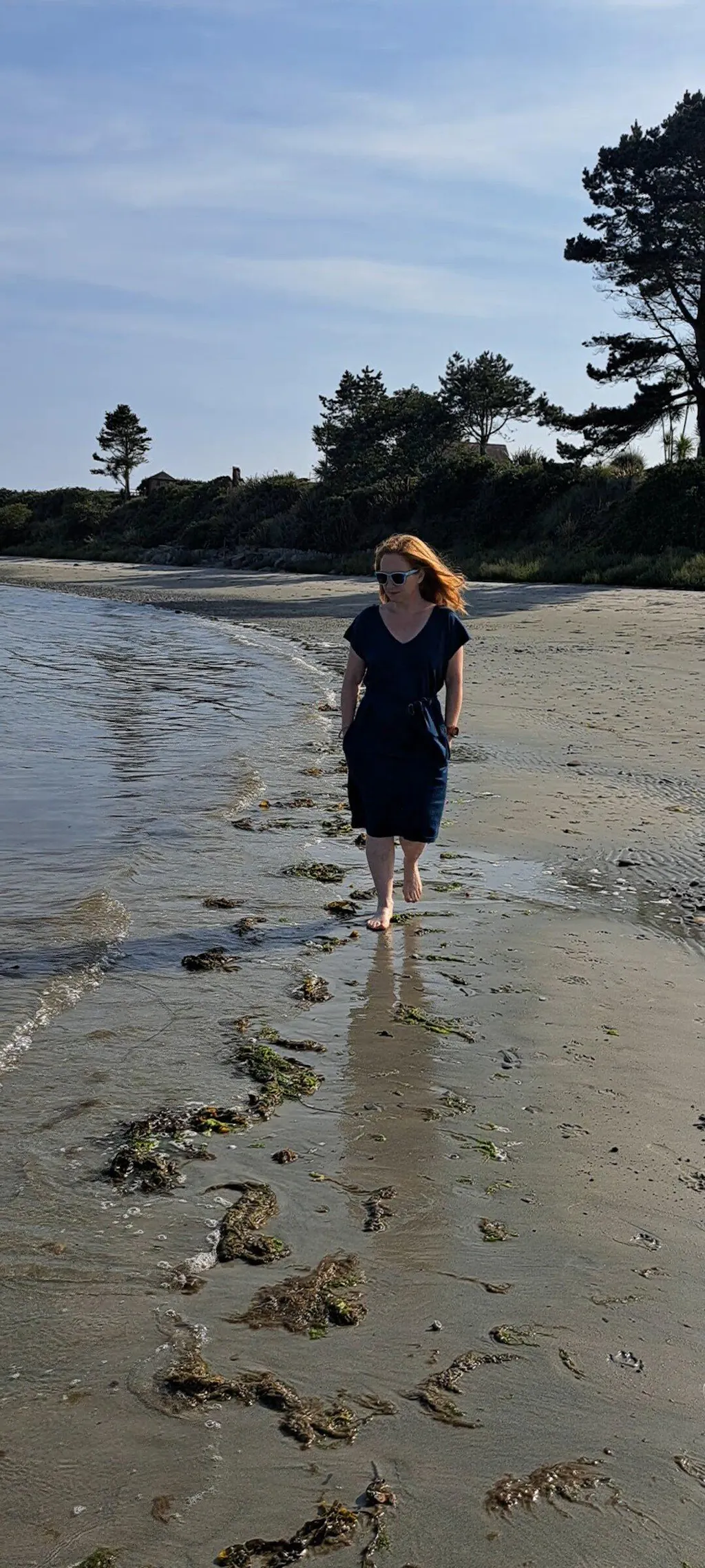 With its reversible design, you can switch between a flattering v-neck style or classic boat neck depending on your mood and the occasion. The added side pockets offer practicality, while the removable waist belt lets you adjust the fit for a more tailored or relaxed look.